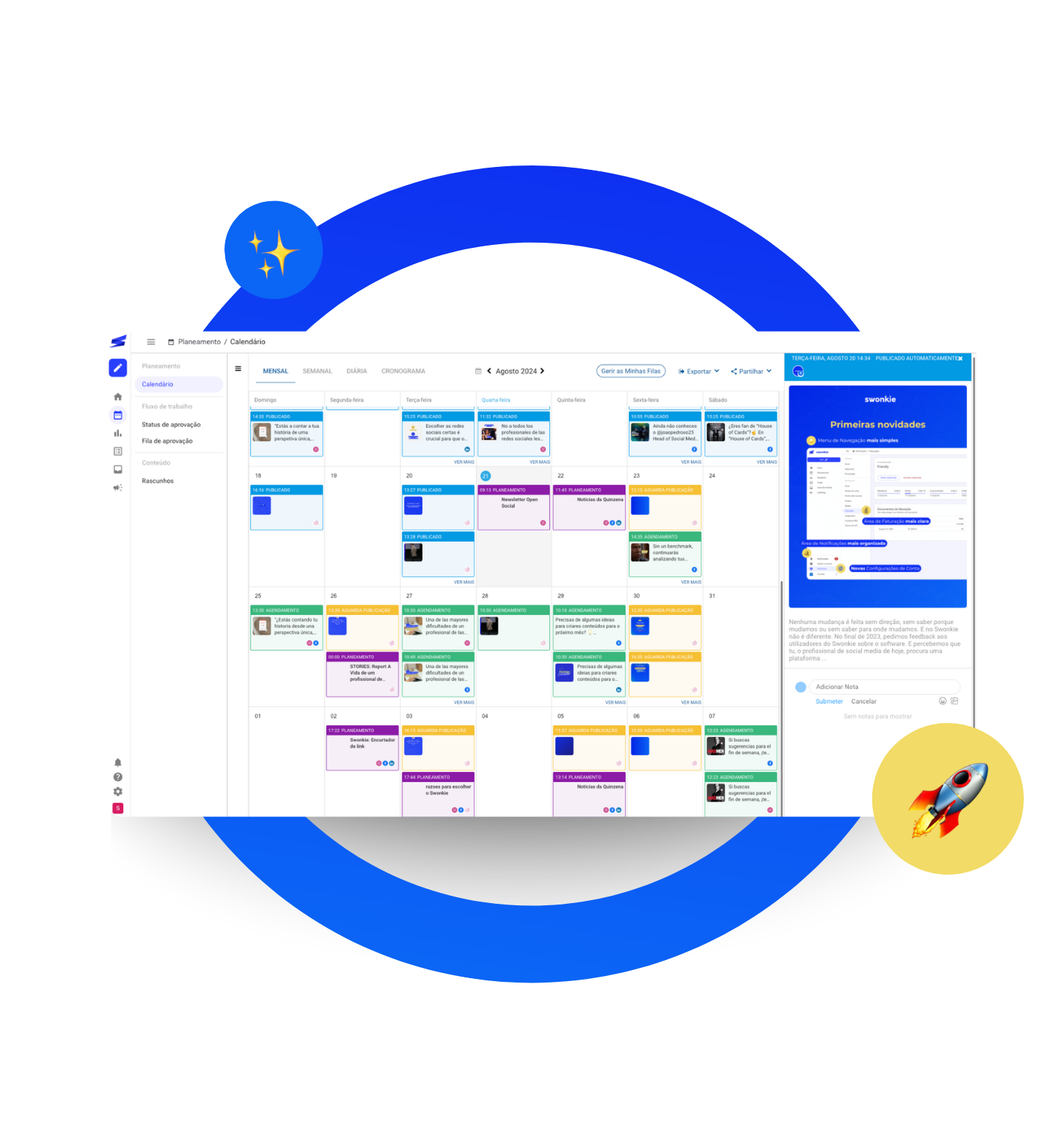 Simplifica os fluxos de trabalho, agiliza aprovações internas e automatiza processos repetitivos para que a tua equipa se foque no que realmente importa: criar conteúdo que gera impacto.